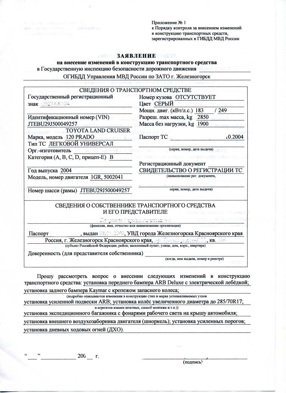 После проведения экспертизы автовладелец должен написать заявление в ГИБДД. В нем, кроме паспортных данных хозяина и регистрационных сведений об автомобиле, должны быть перечислены планируемые изменения конструкции.